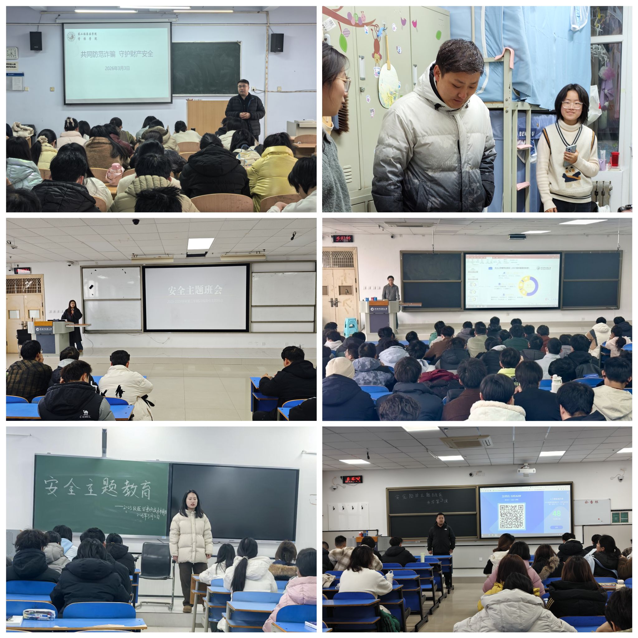 结合新学期开学节点,各班级同步召开“新学期·新征程”主题班会。辅导员们围绕“学业规划”“安全教育”“心理健康”“校规校纪”四大主题展开:针对大一新生,重点解读专业培养方案与考研就业前景,引导学生树立长远目标;面向全体学生,通过案例分析普及反诈防骗、宿舍用电安全等知识,强调实验实训操作规范;关注学生心理状态,开通“一对一”咨询通道。“班会不仅明确了新学期方向,更让我们感受到学院的温暖。”会后同学们表示。